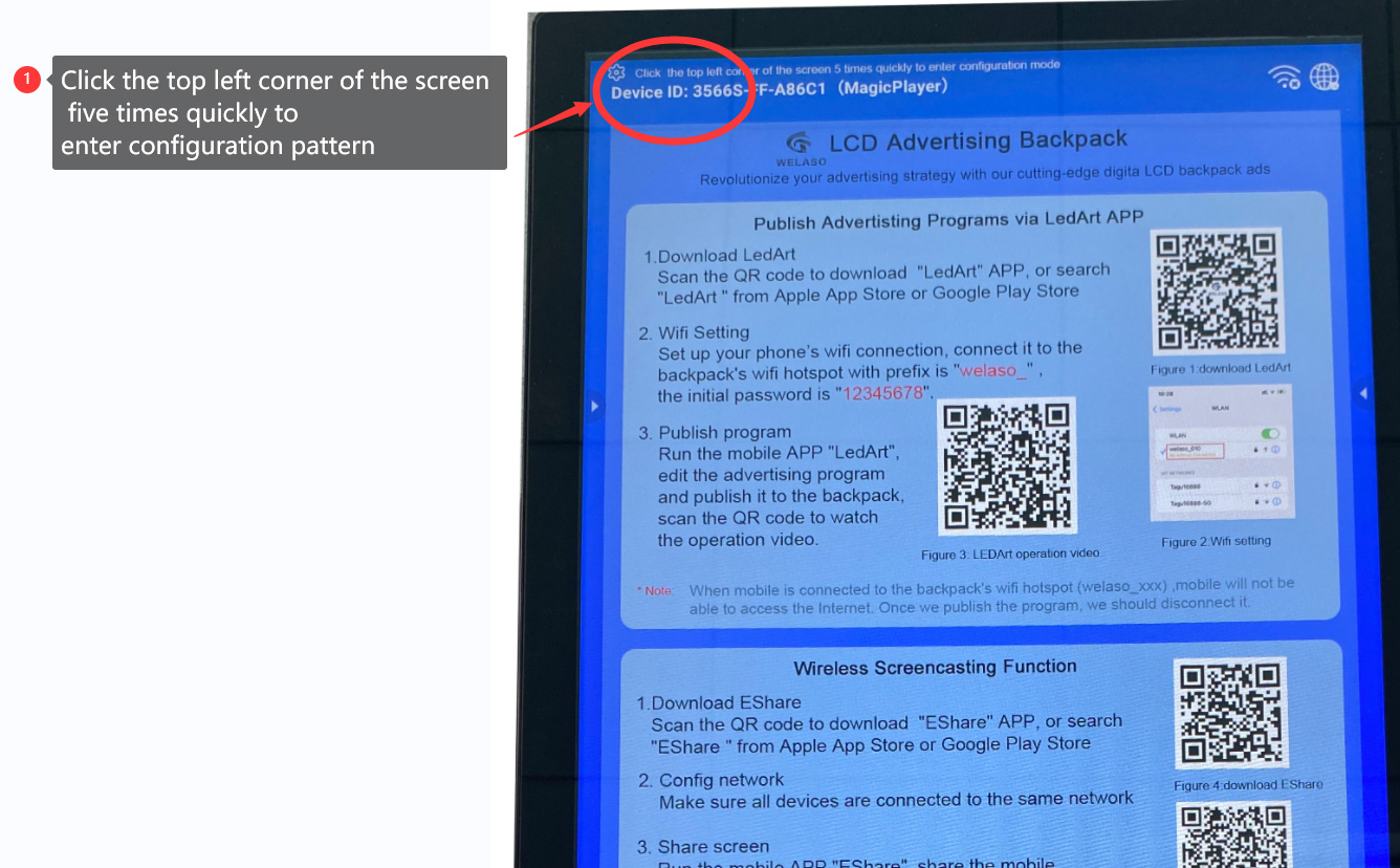 After we use LedArt to publish the program to the backpack, we open the MagicPlay App on the backpack, and the backpack will automatically start to display advertising programs.