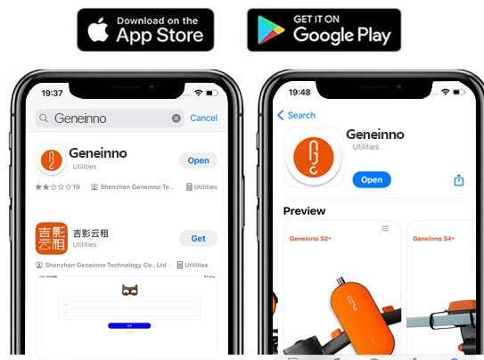 Since Geneinno S2 is child-friendly, we specifically designed the APP for S2, adult can control the scooter on the ground via the app while the child learn swimming in the pool.There are two ways to download the "Geneinno" App.